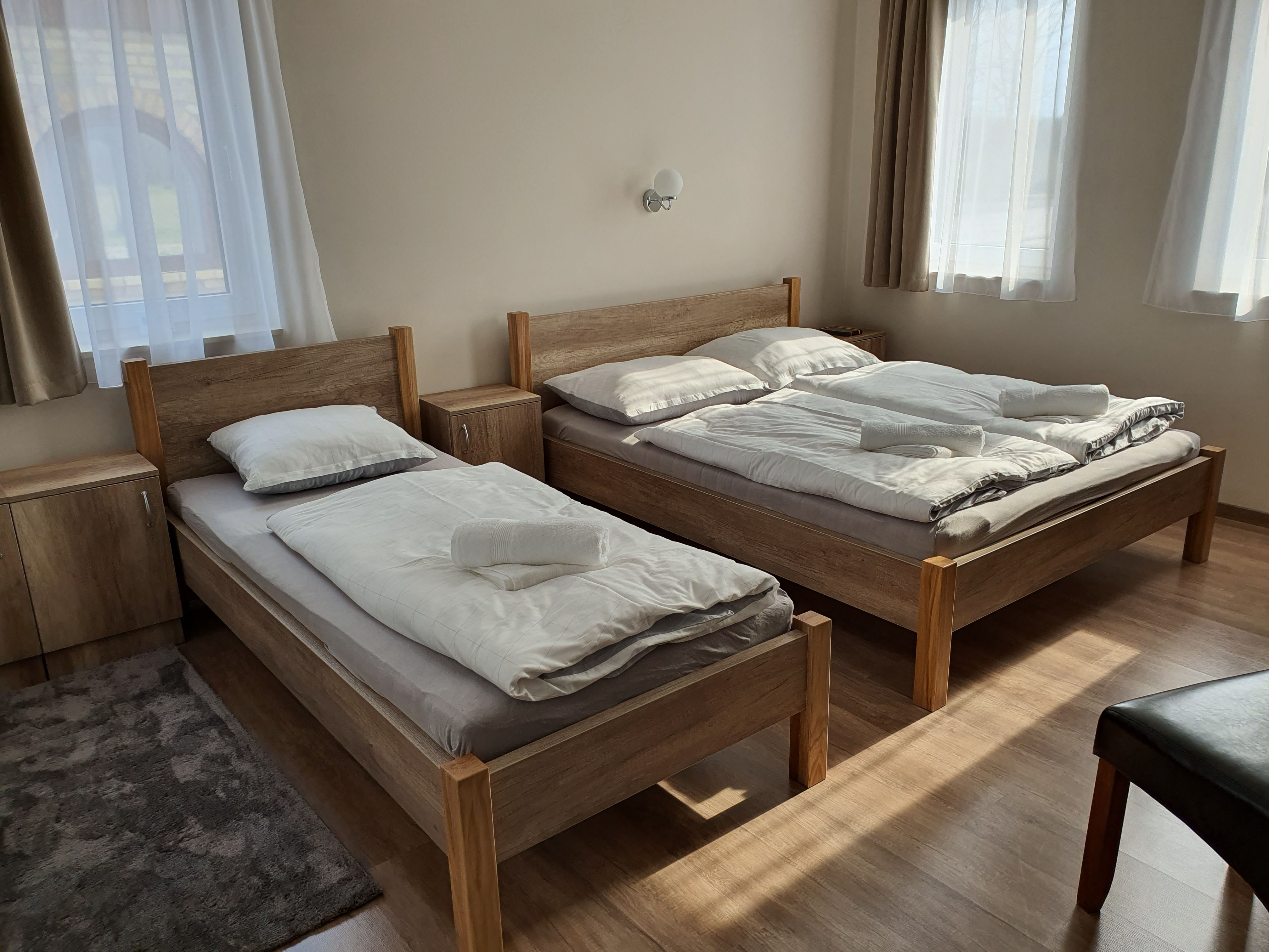 1 db akadálymentes szoba a földszinten, amely 4 fő részére biztosít szállást, privát zuhanyzós fürdőszobával és teakonyhával.